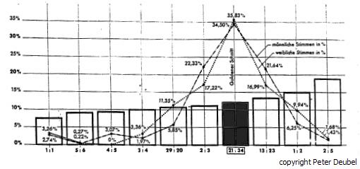 Dieses Verhältnis liegt auch grob bei 5:3 vor. Noch gröber bei 3:2.