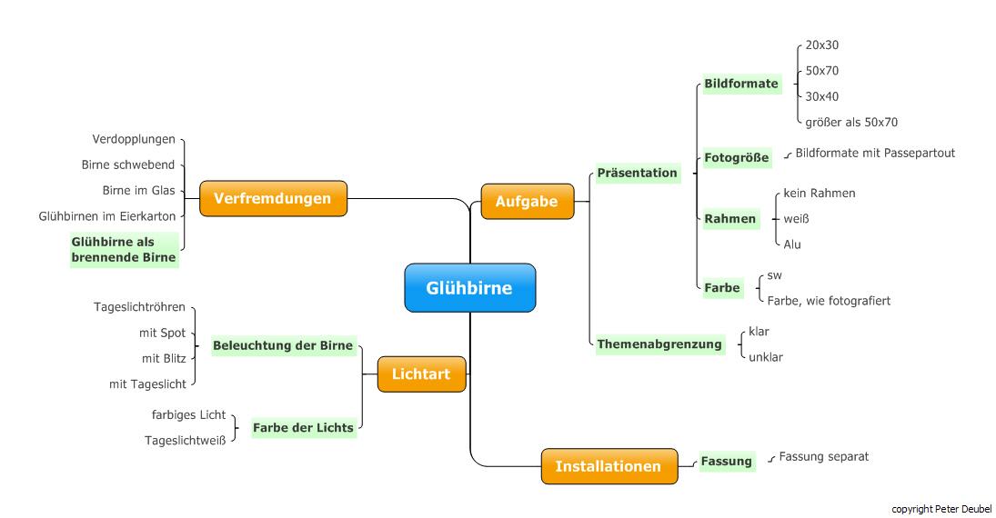 Beispiel: Mindmap Glühbirnen fotografieren
