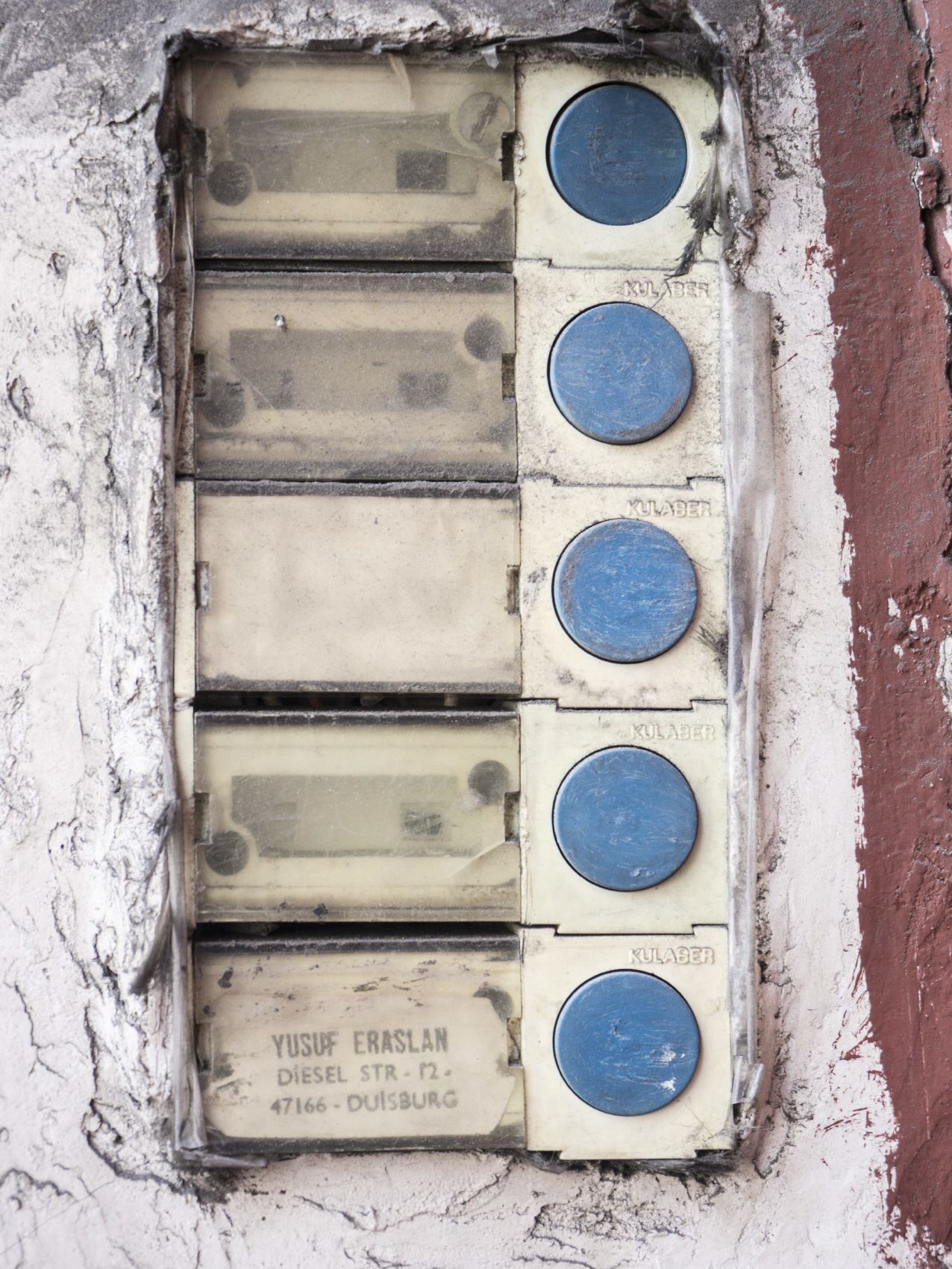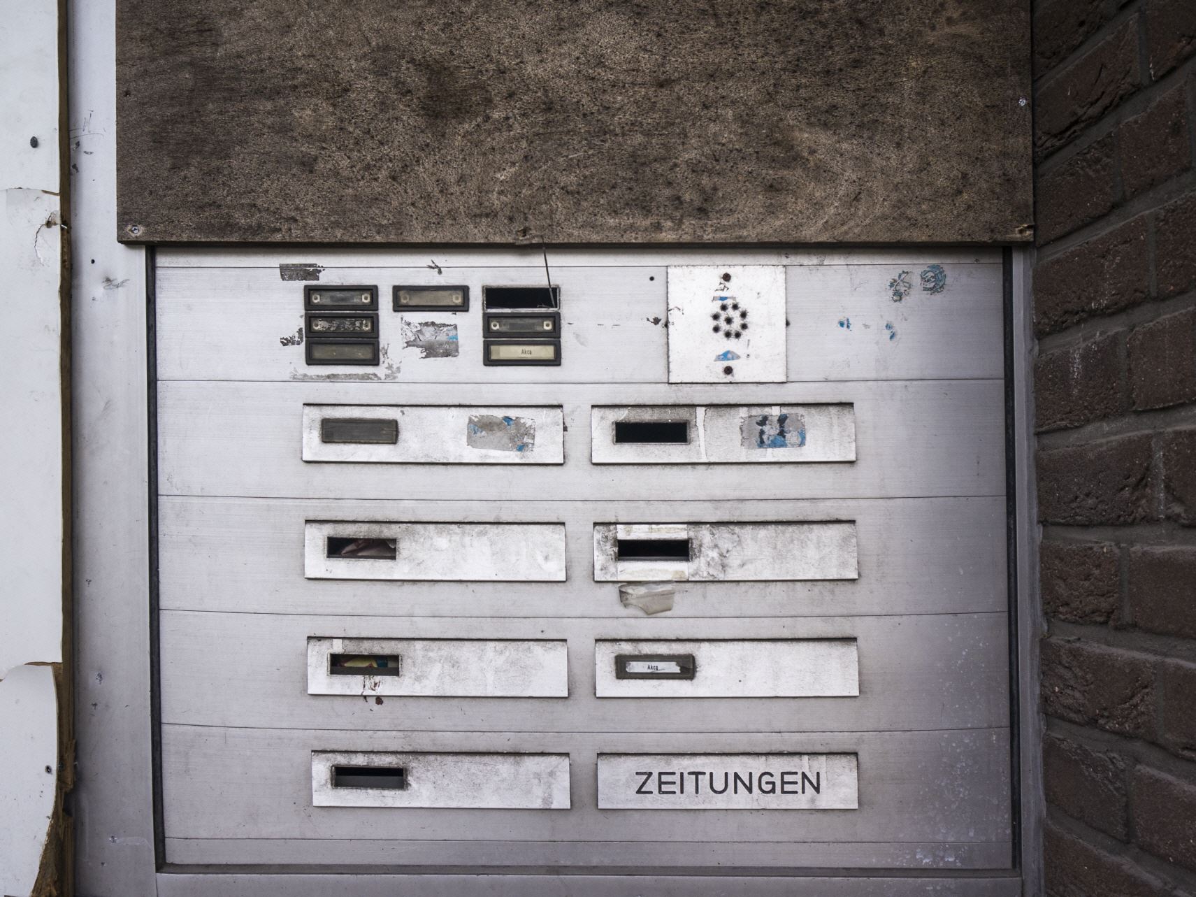 Abgeschlossene Haustüren, verfallene Briefkästen wenn man sie überhaupt so nennen kann erzeugen beim Betrachter den Eindruck, dass es sich in diesem Stadtviertel mehr um Behausungen, als um Wohnungen handelte.
